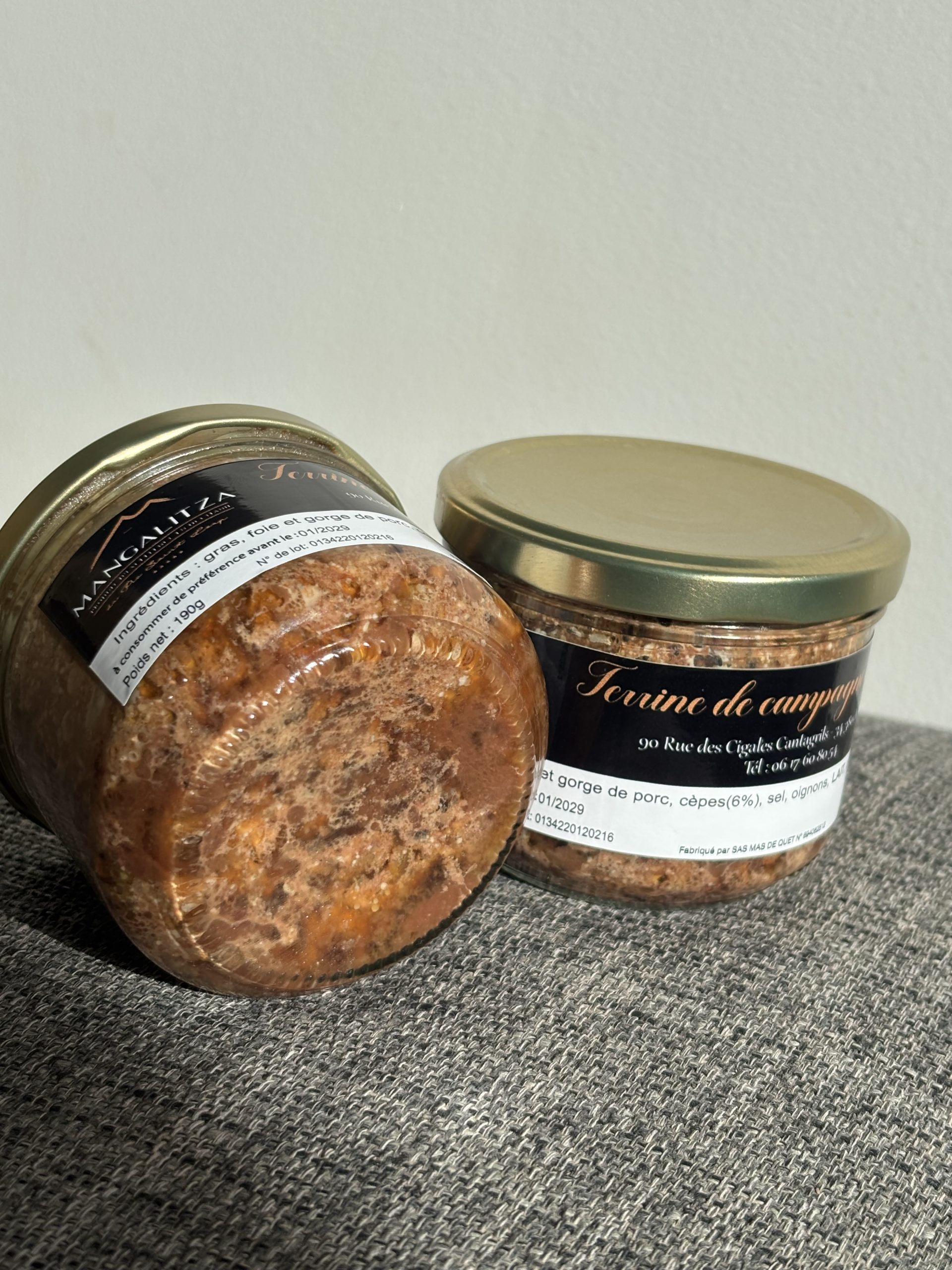 Issu de porc Mangalitza (mangalica en français), cochon rare de la Hongrie, élevé en Occitanie en plein air.